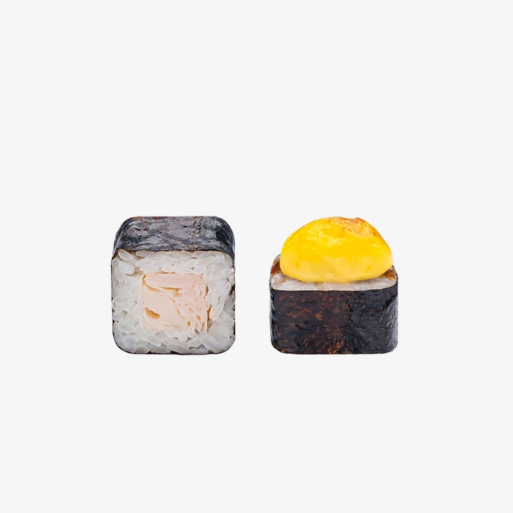 Состав: рис, курица варено-копченая, соус чесночный, соус унаги, кунжут, нори. Выход: 157гр. Годен 3 часа при t 20°C; 12 часов при t 4±2°C.