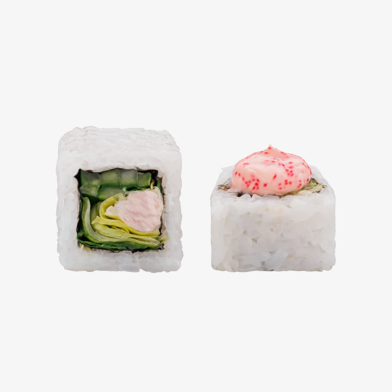 Состав: рис, курица варено-копченая, лист салата, огурцы, соус яки, нори. Выход: 201 гр. Годен 3 часа при t 20°C; 12 часов при t 4±2°C.
