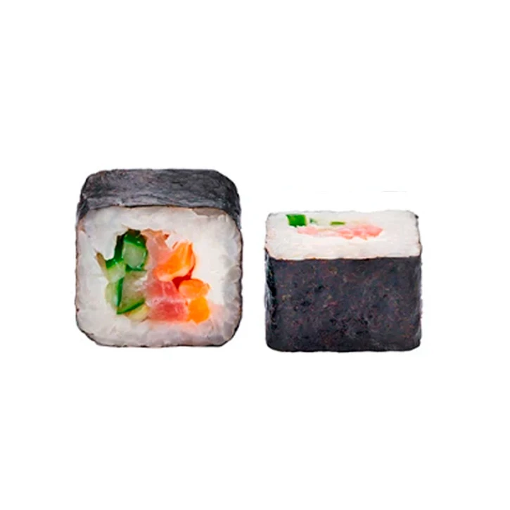 Состав: рис, лосось слабосоленый, тунец слабосоленый, сыр Cremette, огурцы, нори. Внешний вид блюда может отличаться от фото на сайте. Выход: 202 гр. Годен 3 часа при t 20°C; 12 часов при t 4±2°C.