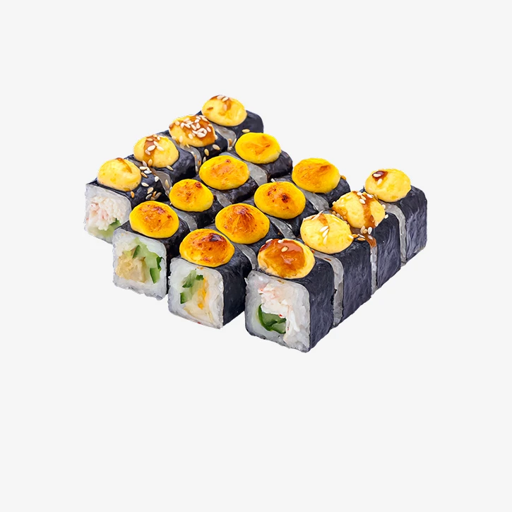 421 грамм, 2 вида, 16 кусочков Запеченные: Краб Луи, Такао. Годен 3 часа при t 20°C; 12 часов при t 4±2°C.