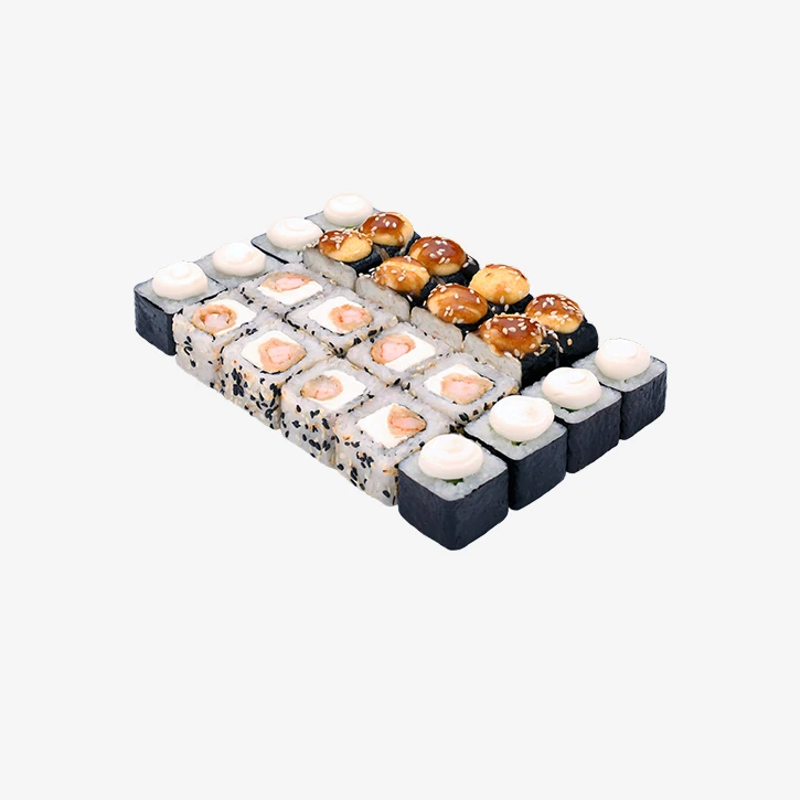 593 грамма, 3 вида, 24 кусочка Роллы: Сливочный Огурец, Нежная креветка Запеченные: Краб Хот Годен 3 часа при t 20°C; 12 часов при t 4±2°C.