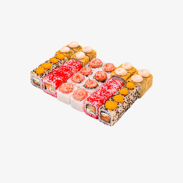 862 грамма, 4 вида, 32 кусочка Роллы: Лава с креветкой, Икута Запеченные: Тарантино Жареные: Окунь Темпура Годен 3 часа при t 20°C; 12 часов при t 4±2°C.
