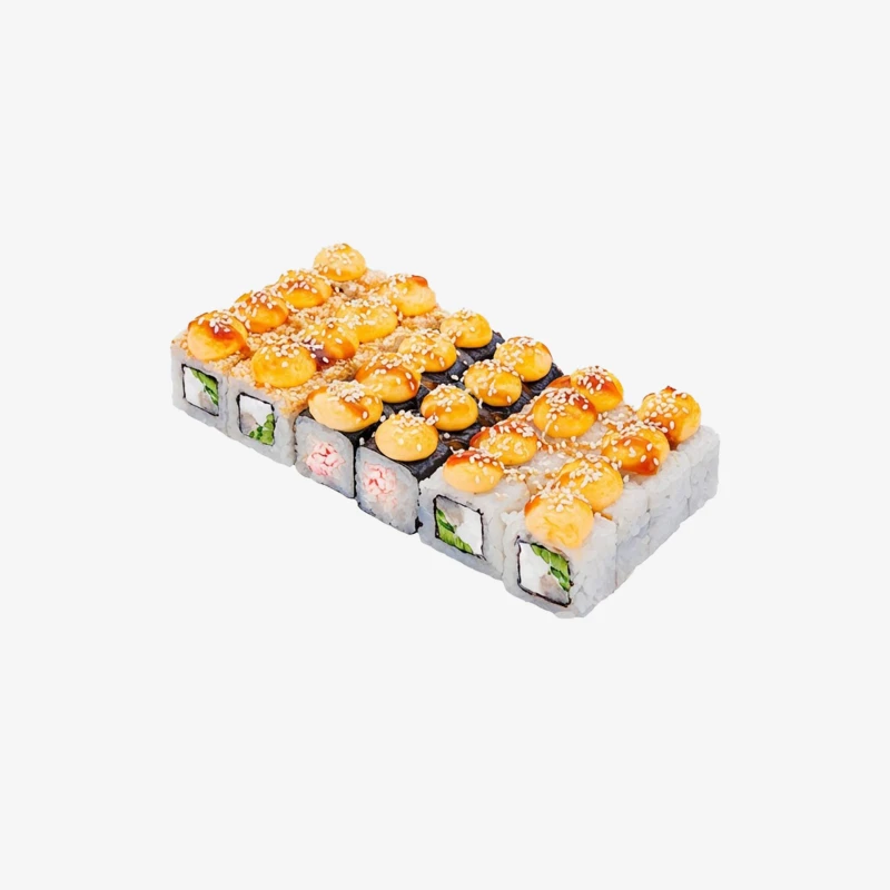 622 гр, 3 вида, 24 кусочка Роллы: Краб Хот ролл, Аляска ролл, Майами ролл Годен 3 часа при t 20°C; 12 часов при t 4±2°C.