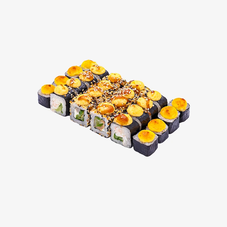 584 грамм, 3 вида, 24 кусочка Запеченные: Мини краб Хот, Краб Луи, Запеченый Тунец. Годен 3 часа при t 20°C; 12 часов при t 4±2°C.