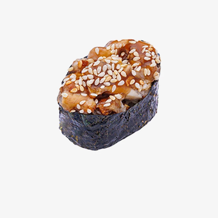 Состав: рис, угорь, соус унаги, кунжут, нори. Выход: 51 гр. Годен 3 часа при t 20°C; 12 часов при t 4±2°C.